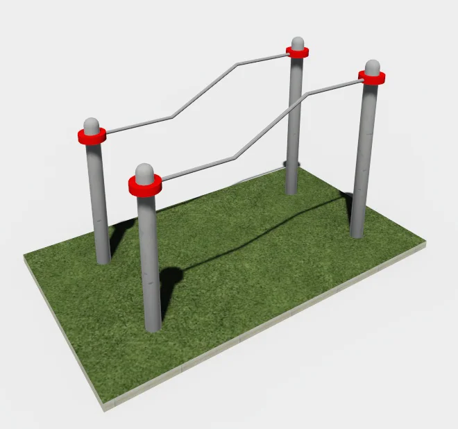 Брусья состоят из 4-х вертикальных столбов и 2-х жердей. Высота столбов 1100 мм. Длина каждой жерди 1790 мм.