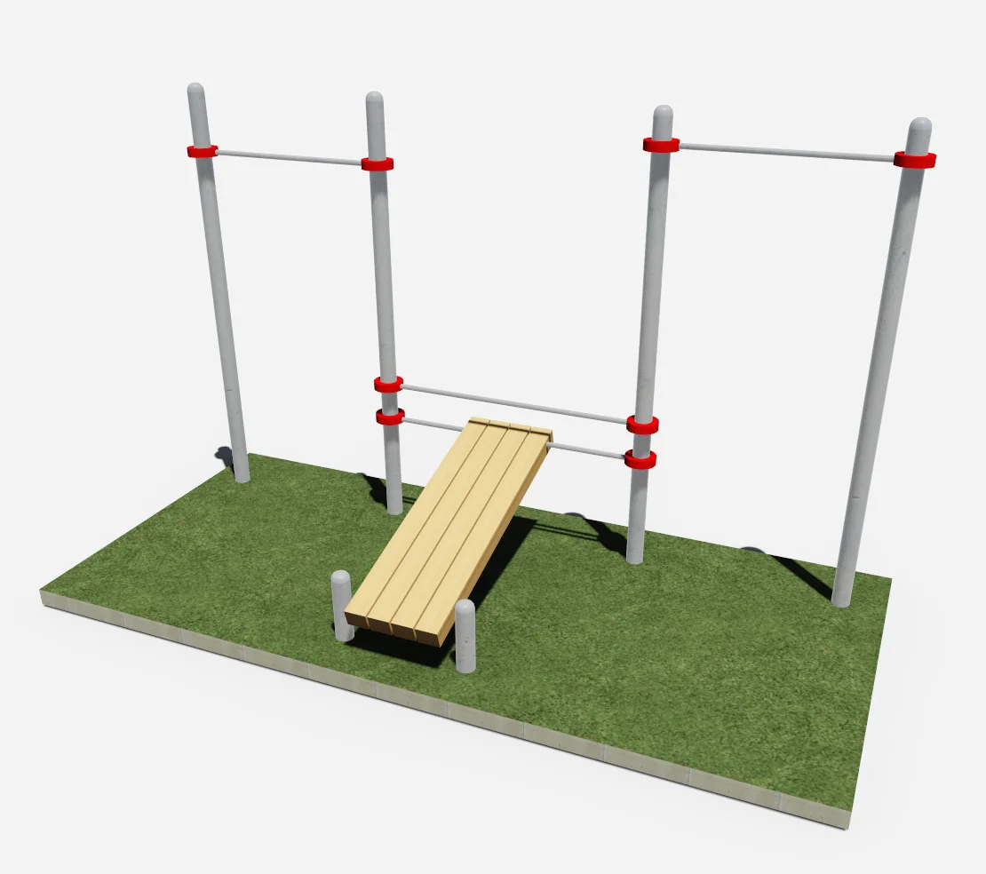 Уличная скамья для пресса и 2 турника