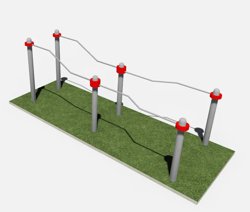 Состоит из: шести вертикальных опорных, параллельно установленных столбов, длиной 1400мм – 2шт. и 1100 мм – 4шт